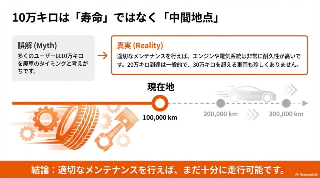 このように10万キロは、メンテナンス計画の転換点です。今後の使用年数や走行距離を見据えて、「次の10万キロに向けた整備計画」を立てることをおすすめします。