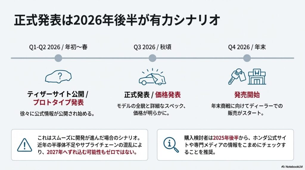 - 2026年後半の発売が有力なシナリオ