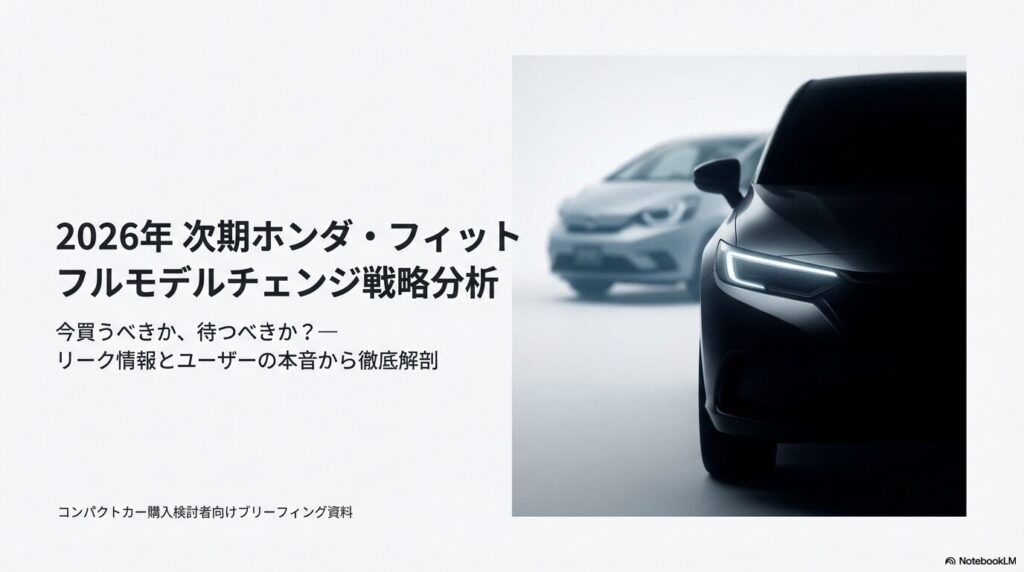 「デザイン」「価格」「安全性能」「走り」。それぞれの視点で、次期型への熱い視線が注がれています。この記事では、これらの声を裏付ける最新のスクープ情報と、メーカーの戦略分析を交えながら、「2026年型フィット」の全貌を深く解説していきます。